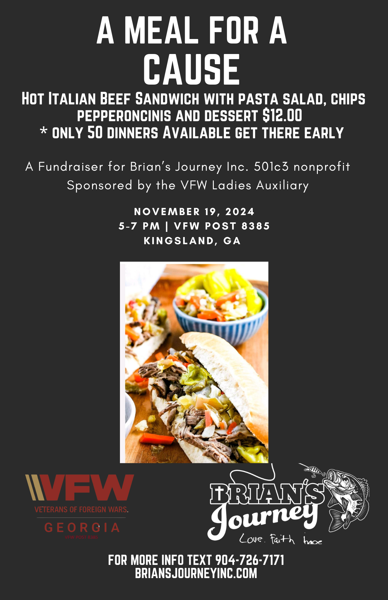 If your in Camden County GA on Tuesday the 19th come out and support our mission by purchasing a meal for a cause 100% proceeds are going towards our mission.